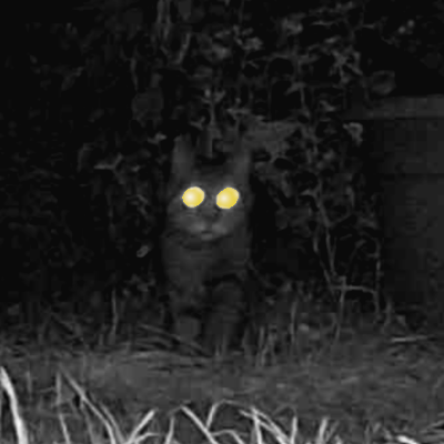 Wegen ständiger, nächtlicher Geräusche hab ich seit einiger Zeit eine Wildkamera am Start. Den Grund der Geräusche hab ich glaub ich noch nicht gefunden, vermute weiterhin einen umtriebigen Marder. Dafür musste ich feststellen, dass hier während ich schlafe jede Menge Besuch vorbeikommt. Häufigster Gast ist Nachbars Katze (da gibt es sogar zwei – ist aber immer nur eine present). Sie ist bisher aber auch das einzige Tier, welches die Infrarotbeleuchtung sehen kann und posiert auch gerne mal direkt vor der Kamera.